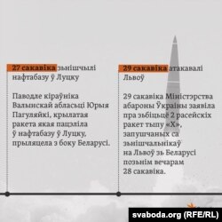 Вядома таксама, што некалькі ракет, запушчаных зь Беларусі, сілы супрацьпаветранай абароны зьбілі пад Кіевам. Папярэдне ў Кіеўскай вобласьці ніхто не пацярпеў.