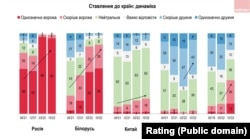 Дадзеныя апытаньняў КМІС пацьвярджаюцца і апошнімі дадзенымі іншага ўкраінскага дасьледчага цэнтру — Сацыялягічнай групы «Рэйтынг». Дасьледчыкі «Рэйтынгу» у кастрычніку задавалі пытаньне пра стаўленьне рэспандэнтаў да розных краінаў сьвету.