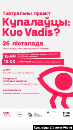 «KUPALAUCY: KUO VADIS? — гэта новы тэатральны праект незалежнай тэатральнай групы Купалаўцы і нямецкай культурніцкай арганізацыi KuB/Kulturverein Belarus. Праект мае форму творчых лябараторыяў i прасоўвае маладую беларускую лiтаратуру i драму, сумесную працу беларускiх i нямецкiх спэцыялiстаў», — пішуць „Купалаўцы“ ў сваім прэс-рэлізе.