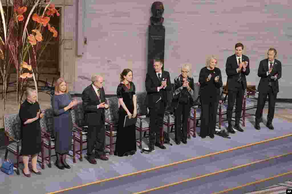 Палітвязьня Алеся Бяляцкага на цырымоніі ў Осла прадстаўляе ягоная жонка Натальля Пінчук, «Цэнтар грамадзянскіх свабодаў» — Аляксандра Матвійчук, «Мэмарыял» — Ян Рачынскі.