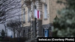 Бел-чырвона-белы сьцяг вывесілі на будынку мэрыі Элку.