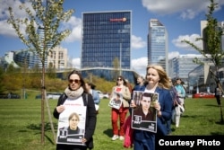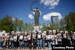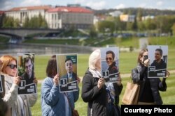 Удзельнікі акцыі ў Вільні трымалі партрэты зьняволеных у Беларусі журналістаў. Год таму ў турмах Беларусі было 24 журналісты. Цяпер у месцах зьняволеньня знаходзяцца 33 прадстаўнікі мэдыя. І гэта з улікам таго, што апошнім часам некаторых журналістаў вызвалілі.
