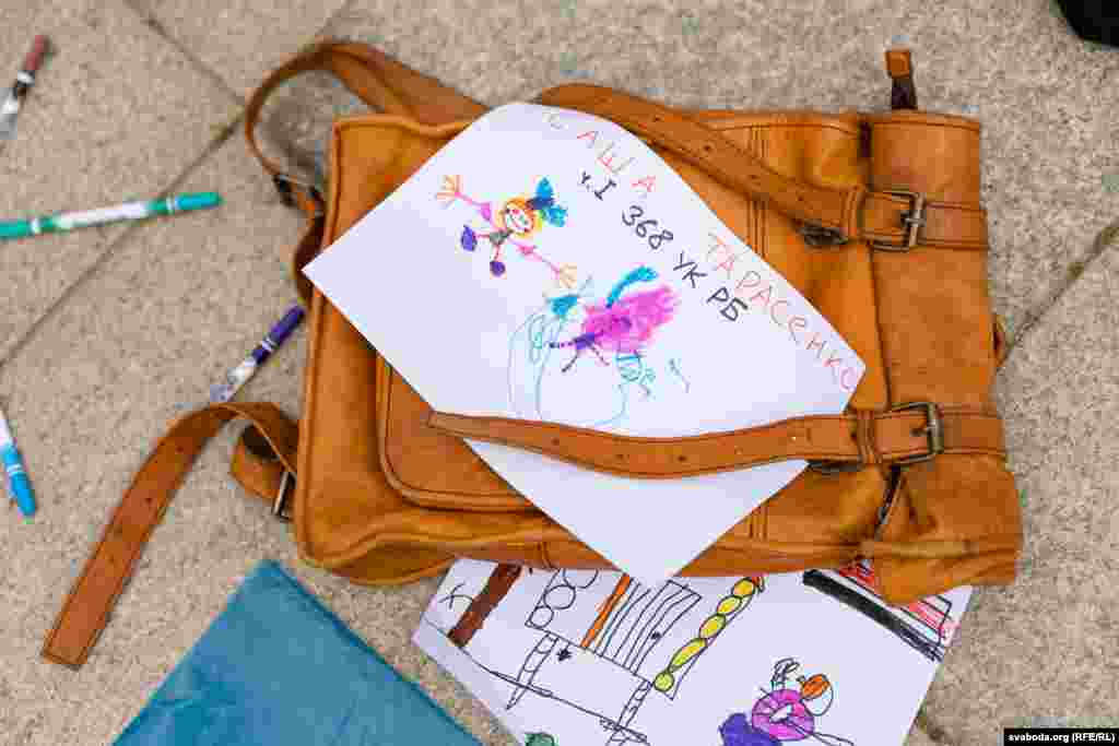 Удзельнікі акцыі паставілі на плошчы 150 торбаў, якія выступаюць напамінам пра больш за 1500 палітвязьняў у Беларусі.