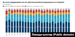 Што да ацэнак дзеяньняў расейскага войска ва Ўкраіне, то перавага была на баку адмоўных ацэнак. Аднак станоўчыя ацэнкі складалі прыкладна 30%.