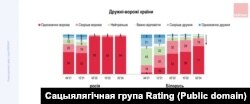 Апытаньні Rating, як і апытаньні КМІС, паказалі істотнае пагаршэньне стаўленьня ўкраінцаў як да дзяржавы Беларусь, гэтак і да беларусаў.
