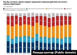 Сацыёлягі таксама задавалі пытаньне пра выбар паміж працягам вайны і пераходам да мірных перамоваў, ня згадваючы Пуціна наўпрост.