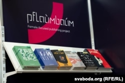 Удзел беларускіх выдаўцоў у найбуйнейшай кніжнай выставе Літвы стаў магчымы дзякуючы намаганьням жаночага выдавецтва «Пфляўмбаўм» пры партнэрстве выдавецтва «Янушкевіч». Агулам яны прадстаўляюць больш за трыццаць кніжных навінак на беларускай мове, якія наведнікі кірмашу могуць набыць таньней, чым у крамах. Пасьля ўрачыстага адкрыцьця пагутарылі з дырэктаркай выдавецтва «Пфляўмбаўм», пісьменьніцай і перакладчыцай Аленай Казловай.