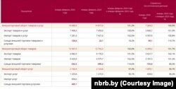 У першыя два месяцы 2024 году Беларусь экспартавала тавараў на 6,2 мільярда даляраў супраць 6 мільярдаў даляраў у аналягічны пэрыяд мінулага году, а імпартавала тавараў на 6,6 мільярда даляраў супраць 6,4 мільярда даляраў летась. Сальда ў гандлі таварамі склалася адмоўным і дасягнула мінус 399,2 мільёна даляраў у параўнаньні зь леташнім на ўзроўні мінус 342,5 мільёнаў даляраў.