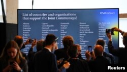Расея не была запрошаная на канфэрэнцыю, ня браў удзелу ў ёй і Кітай. Шэраг краін, якія ўдзельнічалі ў канфэрэнцыі, таксама не падпісалі камюніке — у прыватнасьці Саудаўская Арабія, Індыя, Бразылія, Паўднёвая Афрыка, Інданэзія, Тайлянд, Мэксыка і Аб’яднаныя Арабскія Эміраты. Агулам дакумэнт падпісалі 80 краінаў і 4 міжнародныя арганізацыі