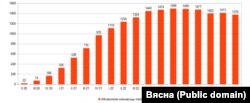 Колькасьць палітычных вязьняў, прызнаных праваабарончай супольнасьцю (паводле справаздачаў «Вясны»)
