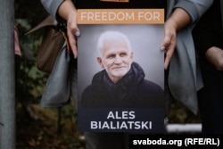 25 верасьня ў сталіцы Літвы Вільні прайшла акцыя салідарнасьці зь ляўрэатам Нобэлеўскай прэміі міру, палітзьняволеным беларускім праваабаронцам Алесем Бяляцкім, якому 25 верасьня споўнілася 62 гады.