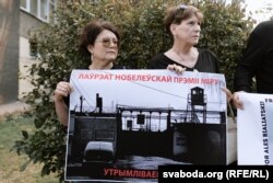 «Цяпер Алеся трымаюць амаль што ва ўмовах „інкамунікада“, калі ніхто ня ведае, чым ён жыве, як жыве, чаго яму не хапае. Нам гэта вельмі балюча. Тыя, хто прайшоў празь зьняволеньне, найлепш гэта разумеюць. Сумленных, лепшых людзей прызнаюць „экстрэмістамі“, кідаюць у найгоршыя ўмовы, а насамрэч яны ні ў чым не вінаватыя. Гэта гонар і годнасьць нашай краіны — такія людзі, як Алесь Бяляцкі, іншыя сотні і сотні палітычных вязьняў. Таму мы сёньня тут, і мы патрабуем свабоды для нобэлеўскага ляўрэата Алеся Бяляцкага і свабоды для ўсіх беларускіх палітвязьняў!» — сказала на пікеце Алена Масьлюкова.