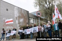 Алесь Бяляцкі ў зьняволеньні ўжо больш за 3 гады — яго арыштавалі 14 ліпеня 2021 году і асудзілі на 10 гадоў калёніі. У руках пікетоўцаў, якія прыйшлі да «муралу Бяляцкага», сярод іншых плякатаў былі і тыя, на якіх па-ангельску было напісана: «Уратаваць Алеся Бяляцкага».