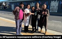 На сымбалічным адкрыцьці муралу прысутнічалі беларуская дэмакратычная лідарка, кіраўніца Аб’яднанага пераходнага кабінэта Сьвятлана Ціханоўская, прадстаўніца АПК па нацыянальным адраджэньні Аліна Коўшык і прэзыдэнт Amnesty International Polska Міхал Курпінскі.