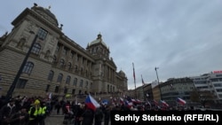«Мы павінны клапаціцца перш за ўсё пра бясьпеку Чэхіі, а не дапамагаць Украіне, не думаючы пра ўласны народ, як гэта цяпер робяць чэскія ўлады», — заявіў адзін з арганізатараў акцыі са сцэны каля Нацыянальнага музэя.