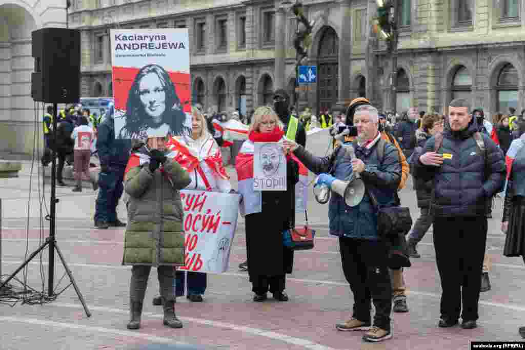 Падчас маршу гучалі воклічы «Жыве Беларусь», «Верым, можам, пераможам!» і «Свабоду палітвязьням!»