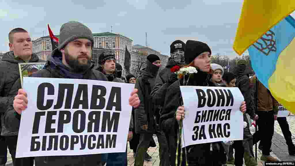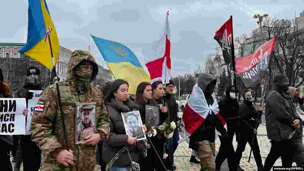 У сталіцы Ўкраіны прайшло шэсьце зь беларускімі нацыянальнымі сьцягамі і транспарантамі ў памяць палеглых за свабоду Ўкраіны беларусаў