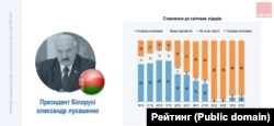 Зусім іншае стаўленьне да Лукашэнкі ва Ўкраіне. З 2014-га па 2020 год ён быў самым папулярным замежным палітыкам для ўкраінцаў. Але пасьля пачатку поўнамаштабнай вайны яго папулярнасьць ва Ўкраіне абрынулася. Яшчэ ў студзені 2022 году ў апытаньні ўкраінскай сацыялягічнай групы «Рэйтынг» пра станоўчае стаўленьне да Лукашэнкі заявілі 29% рэспандэнтаў. А ўжо ў красавіку таго ж году — толькі 2%. Такое ж стаўленьне захоўвалася і пазьней, у 2022 годзе. Аднак, паводле апытаньня «Рэйтынгу», у кастрычніку летась станоўчыя ацэнкі Лукашэнку далі ўжо 7% украінцаў, а ў сьвежым, лютаўскім 2025 году — 8%.