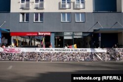 Удзельнікі акцыі трымалі партрэты беларускіх палітвязьняў, якіх доўгі час утрымліваюць у рэжыме інкамунікада: акрамя Сяргея Ціханоўскага, гэта палітвязьні Максім Знак, Мікалай Статкевіч, Ігар Лосік, Віктар Бабарыка, Уладзімер Кніга, Андрэй Навіцкі і Аляксандар Францкевіч. таксама мітынгоўцы трымалі расьцяжку «Лукашэнку — у Гаагу» і шматмэтровы плякат з фатаздымкамі соцень беларускіх палітвязьняў.