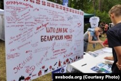 Можна было навучыцца ткаць традыцыйныя паясы на майстар-клясе Рэгіны Лавор і сьпяваць жніўныя сьпевы з Вольгай Барышнікавай.