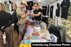 У пункце фонду BySol, як і летась, ставілі пераводкі з надпісам «экстрэміст» і раздавалі бліскучкі і налепкі за ахвяраваньне. Кіраўнік фонду Андрэй Стрыжак заўважае, што яны ўвесь час працуюць з досыць сумнымі гісторыямі.