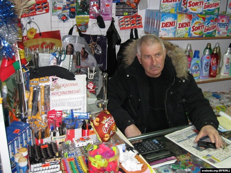 У пустэльнай Іваньковай крамцы з гаспадарчымі таварамі сумаваў падсобны рабочы Андрэй Макаранка, які, між іншым, жыве з таго, што ня першы год езьдзіць гастарбайтэрам у Расею. Уступае ў размову.