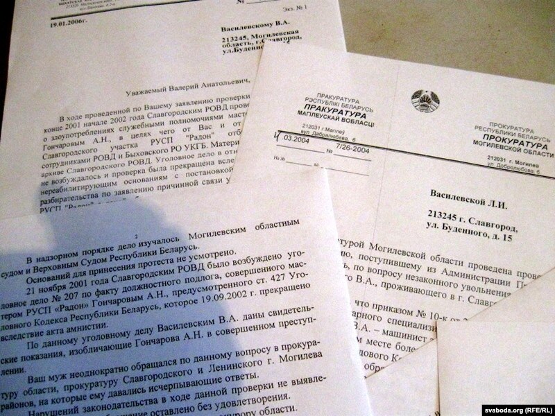 Васілеўскі: «Я даў паказаньні сьведкі супраць майстра ўчастка і яго набліжаных — пяці чалавек. Прадавалі ўсё — печкі, паліва. Калі прыяжджаем у адселеную вёску — ні душы. І мы дамы закопвалі ў зямлю. Уяўляеце, колькі там будматэрыялаў, лазьняў! Бульдозэр яны „загналі“. А паліва колькі — за месяц па 9 тон саляркі. Завадатарамі былі два браты Філімонавы — афіцэры, што за крадзяжы былі выгнаныя з войска. У нас яны былі звычайныя кіроўцы-дэзактыватары. Майстар быў „казёл адпушчэньня“ — усё сьпісваў. Калі дайшло да праваахоўных органаў, да мяне і прыехалі супрацоўнікі КДБ. Праклінаю той дзень, калі даў паказаньні. Было гэта перад Новым годам, і 8 студзеня мяне ўжо выкінулі з працы без загаду — „пайшоў вон“. Я прыходжу на працу — майстар ставіць прагулы. Выклікаў міліцыю, давалі яму позвы, а ён ставіць мне прагул. Пайшоў да гэтых „хлапцоў“ — „не хвалюйся, у крыўду цябе не дамо“… Тут гэтая крымінальная справа перададзена ў міліцыю і там празь некага развалілася. Паехаў у КДБ — „ты ўжо ня сьведка па гэтай справе, яе няма“. Калі звальнялі мяне і Палякова — сьведкамі былі ўдвох — паставілі ў віну „непраходжаньне мэдкамісіі“ і „3 гадзіны прагулаў“ без пазначэньня дня. Я прайшоў абласны, Вярхоўны суды, пракуратуры — 5 год ваяваў. Бяз сэнсу! У мяне ў працоўнай так і стаіць штэмпэль — „звольнены па артыкуле“. Пайшоў на кірмаш да прадпрымальнікаў — 3 рублі ў дзень атрымліваў. Намёты зьбіраў, грузіў баўлы. Вось такое жыцьцё — за месяц 70 рублёў, пакуль у 2007-м не пайшоў на пэнсію…»