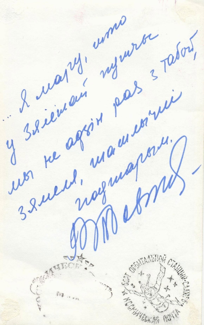 “Думаю, не касьмічная лексыка яго падкупіла і заінтрыгавала. Зачапіла яго за душу наша родная рэчка Нача. Кавалёнак жа быў улюбёны ў свой край, любіў прыяжджаць на радзіму, на нашу Крупшчыну. Ён мне расказваў пазьней, як адбылася яго сустрэча з маёй кнігай. Падчас першага няўдалага палёту Кавалёнка не адбылася запраграмаваная стыкоўка ў космасе, і касманаўты хутка прызямліліся. Гэтая няўдача прывяла Кавалёнка ў родную вёску, ён прыехаў самотны, без суправаджальных картэжаў. Калі ў кнігарні касманаўт убачыў кнігу пад назвай “Нача”, ён яе адразу купіў і ўзяў з сабой у Зорны гарадок. Калі рыхтаваўся яго другі палёт зь Іванчэнкавым, ён у праграме, што прыслаць у космас касьмічнай поштай, пазначыў “Начу”. І на арбітальную станцыю “Саюз-6” грузавіком “Прагрэс” гэтая кніжка яму і была дастаўлена. А Іванчэнкаву, дарэчы, даставілі гітару”.