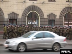 У дварах дамоў на праспэкце Незалежнасьці паўсюль супрацоўнікі спэцслужбаў у цывільным, як беларускія, так і расейскія.