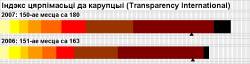 “Transparency International” ужо шмат гадоў вымярае індэкс успрыманьня карупцыі насельніцтвам розных краінаў сьвету. Дасьледаваньні гэтай арганізацыі сьведчаць пра тое, што карупцыя ў Беларусі ва ўспрыманьні беларусаў за апошнія гады рэзка вырасла: пры канцы 1990-х краіна была сярод 50 дзяржаваў, найменш карумпаваных з пункту гледжаньня грамадзянаў. Летась яна была на 151-м месцы са 163-х, сёлета – на 150-м месцы са 180-ці.