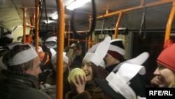 Удзельнікі флэш-мобу зноў сабраліся ў цэнтры Менску і ў масках зайцоў і без квіткоў праехалі да гандлёвага цэнтру “Карона”, дзе наладзілі фаервэрк. У тралейбусе ўдзельнікі флэш-мобу елі капусту і моркаўку.