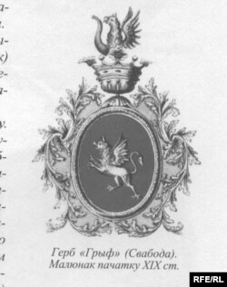 Скобла: “Гербы мелі свае адметныя назвы. Напрыклад: “Сьляпы крумкач”, “Чорны анёл”, “Праўдзіч”… У вашай кнізе мне сустрэўся герб пад назвай “Свабода”. Хто ім карыстаўся?”