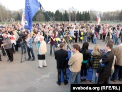 19:40 Адзін з арганізатараў мерапрыемства Дзяніс Садоўскі заклікаў удзельнікаў мітынгу ўскласьці кветкі і паставіць сьвечкі ля Чарнобыльскай капліцы. Міліцыя паабяцала не чыніць перашкодаў, але пры гэтым забараніла перасоўвацца пад нацыянальнай сымболікай.