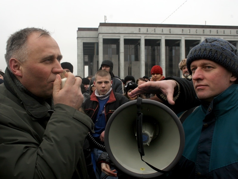 З таго часу ён узначальваў больш за 30 шматтысячных мірных дэманстрацый за незалежнасьць Беларусі, за што меў каля 30 адміністратыўных арыштаў. Напярэдадні прэзыдэнцкіх выбараў 2001 і 2006 гадоў супраць яго ўзбуджаліся крымінальныя справы, каб перашкодзіць яго ўдзелу ў выбарах у якасьці кандыдата ў прэзыдэнты. У 2005 годзе яго асудзілі на 3 гады абмежаваньня свабоды. Пасьля "хіміі" ён працягнуў палітычную дзейнасьць, нягледзячы на тое, што ўлады рабілі ўсё, каб прыбраць яго з палітычнай арэны.
