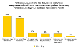 Вынікі выглядаюць парадаксальна: 45% апытаных выказваюць сумневы ў тым, што выбары пройдуць сумленна, 65% мяркуюць, што адказ на пытаньне, хто будзе наступным прэзыдэнтам, залежыць ад Уладзімера Пуціна і ягонай адміністрацыі, і толькі 19% мяркуюць, што гэта будзе залежаць ад волі выбаршчыкаў. І разам з тым тры чвэрці апытаных кажуць, што пойдуць галасаваць, пры гэтым 45% апытаных чакаюць ад прэзыдэнцкіх выбараў лепшага жыцьця для сябе і сваёй сям’і і прыкладна столькі ж – падвышэньня пэнсіяў і заробкаў.