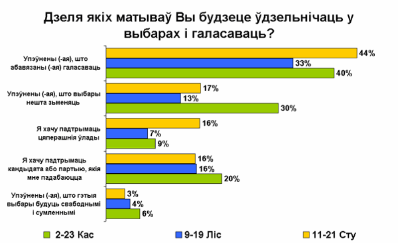 Чаму ж людзі гатовыя ісьці на выбары, калі, паводле іх меркаваньня, яны ня будуць сумленнымі і ад іх голасу нічога не залежыць?