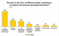 Сацыёляг цэнтру Лявады Барыс Дубін зьвяртае ўвагу, што чаканьні людзей наконт паляпшэньня іх жыцьця зьвязаныя з чаканьнем, што выбары нічога ня зьменяць, што пераемнік будзе працягваць курс дзейнага прэзыдэнта: