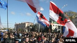 Сёньняшняя акцыя, як і ранейшыя, адбываецца пад лёзунгам “Беларусь у Эўропу!”.