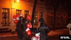 210 паветраных шарыкаў з “валянцінкамі”, аздобленымі бел-чырвона-белымі стужкамі, актывісты раздалі мінакам за паўгадзіны.