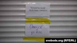 Свабода сабрала абвесткі, якія прадпрымальнікі вывешваюць на зачыненых павільёнах у менскіх гандлёвых цэнтрах «Купалаўскі», «Імпульс» і «Люстэрка».