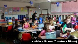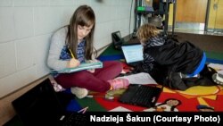 Амэрыканская школа вельмі свабодная, дзеці могуць рабіць працу ў клясе паўсюль, дзе зручна, — і на дыване, і на парце, і на падлозе. У цябе там шмат прасторы. У Амэрыцы вельмі добрыя настаўнікі, і настаўнікамі часта могуць быць мужчыны.