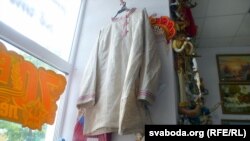 «Ім, калі нешта купляюць, падабаецца, што ёсьць на сувэнірах беларускія нацыянальныя элемэнты, — зазначае дзяўчына. — Вось тут жанчына час ад часу буслоў цацачных шые. Яны ў яе з вышыванкай. Дык вось гэты сымбаль беларускі расейцы любяць набываць. У мяне цацкі купляюць».
