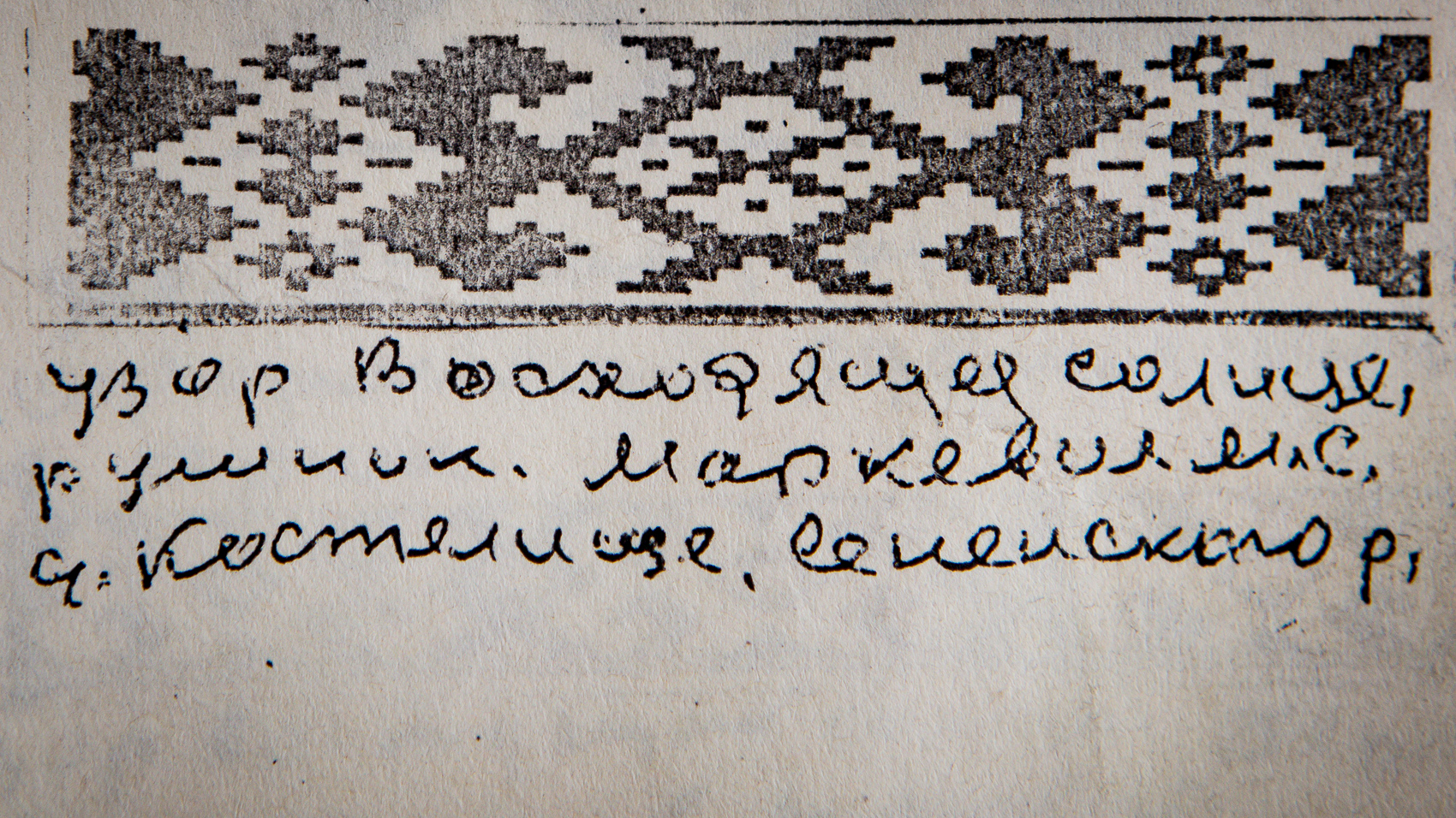 Яўген Міхайлавіч Сахута працуе ў Інстытуце этнаграфіі Нацыянальнай акадэміі навук. Ён рыхтаваў да друку апошнюю кнігу Міхаіла Кацара — «Беларускі арнамент. Ткацтва. Вышыўка». У копіі рукапісу, што захавалася ў Сахуты, акурат прыгадваецца гісторыя пра Матруну Маркевіч. Ёсьць і замалёўка ручніка, зь якога быў узяты арнамэнт.