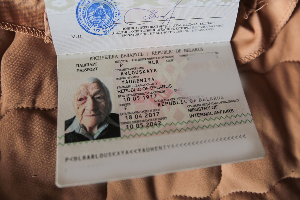 «Як мне споўнілася 100 год, дык такое сьвята для мяне арганізавалі! — пахвалілася Яўгенія Мікалаеўна. — Адусюль папрыходзілі мяне віншаваць. І з гарвыканкаму былі, з сабесу, з пашпартнага стала. Кіраўніцтва заводу прыйшло. Гасьцінцаў шмат нанесьлі. Я так рада была. І гармонік прынесьлі. Пляменьнік у нас сьпявае на розных мовах, дык як сьпяваў, то і танцавалі, і плакалі».