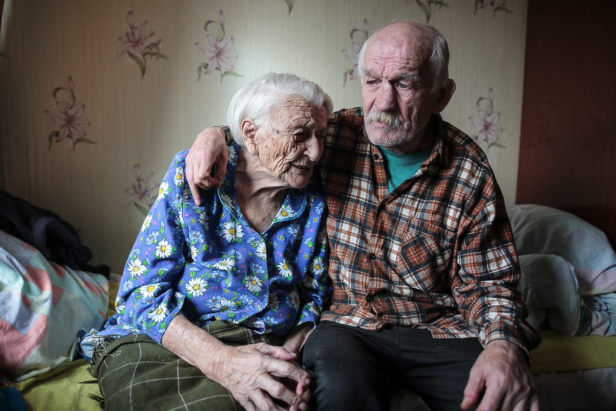Яўгенія Мікалаеўна жыве разам з сынам у трохпакаёвай кватэры на трэцім паверсе тыповай «хрушчоўкі». Пасьля таго як памерла дачка, у яе адняліся ногі, і апошнія гады яна не выходзіць з хаты. Дваццаць гадоў таму ў яе пачаў горшаць зрок. Цяпер яна невідушчая.