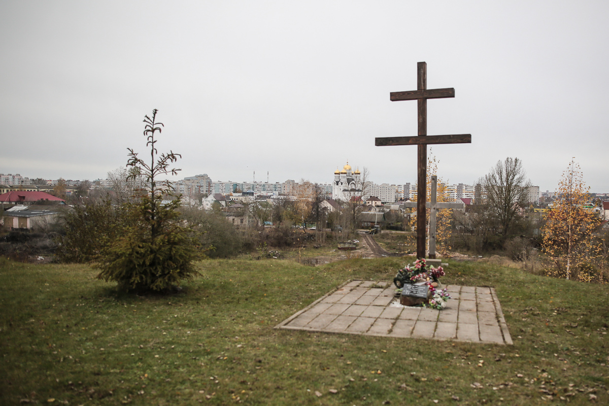 Крыж памяці на праспэкце Дзімітрова. У кар’еры, мяркуюць сёстры Арлоўскія, расстралялі іхнага бацьку