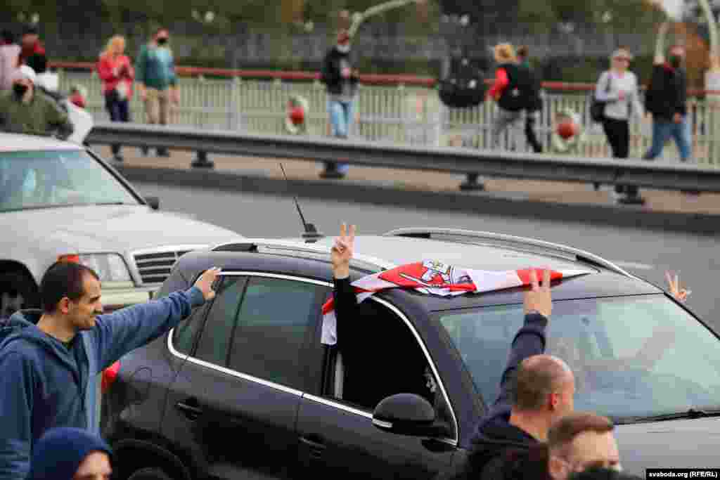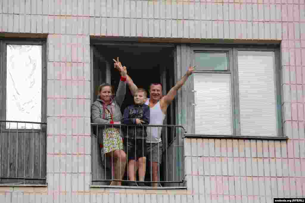 Людзі вітаюць пратэстоўцаў з бальконаў