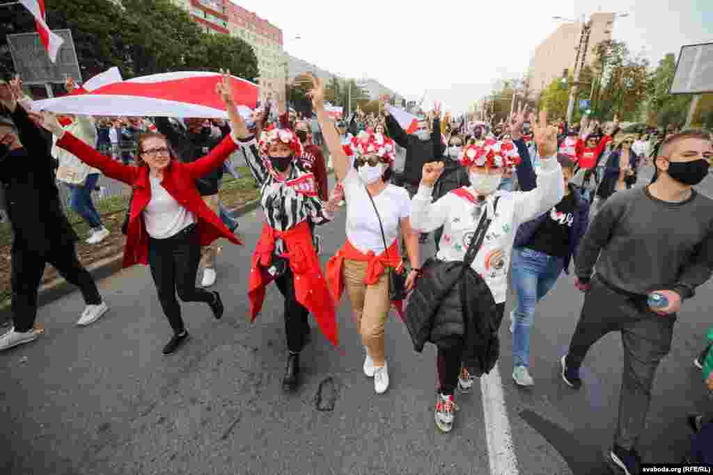 Дзясяткі тысяч людзей прымаюць удзел у «Маршаў вызваленьня палітвязьняў» у сталіцы. З пачатку прэзыдэнцкай кампаніі колькасьць палітычных зьняволеных у Беларусі вырасла з трох да 77. Глядзіце здымкі з 57-га дня пратэстаў супраць фальсыфікацыі прэзыдэнцкіх выбараў.