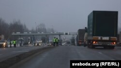 На магістралі М1 у раёне беларуска-расейскай мяжы супрацоўнікі ДПС выбарачна спыняюць як грузавыя, так і легкавыя аўтамабілі.