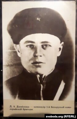 — Гэты помнік паставілі ў сярэдзіне 70-х гадоў. Там спачатку была мармуровая шыльда, дзе было напісана, што помнік пастаўлены ў гонар 1-га кавалерыйскага партызанскага атраду Дзенісенкі. Правісела яна месяцы тры. Абурыліся ўсе. Бо на гэтай тэрыторыі дзейнічала шмат атрадаў. Ён быў ініцыятарам гэтага помніка. Спачатку хацеў яго паставіць у Новым Сяле. Але там былі супраць, бо Новае Сяло спалілі празь Дзенісенку. Яны базаваліся за Нёманам, а туды прыяжджалі вечарамі пакуціць. І ён называў Новае Сяло Масквой. Немцы, маўляў, сюды хадзіць ня будуць. Дык вось, як гэтую шыльду разьбілі, хутка зьявілася іншая, дзе былі пералічаныя ўсе партызанскія злучэньні. А супраць Дзенісенкі народ быў настроены агрэсіўна.